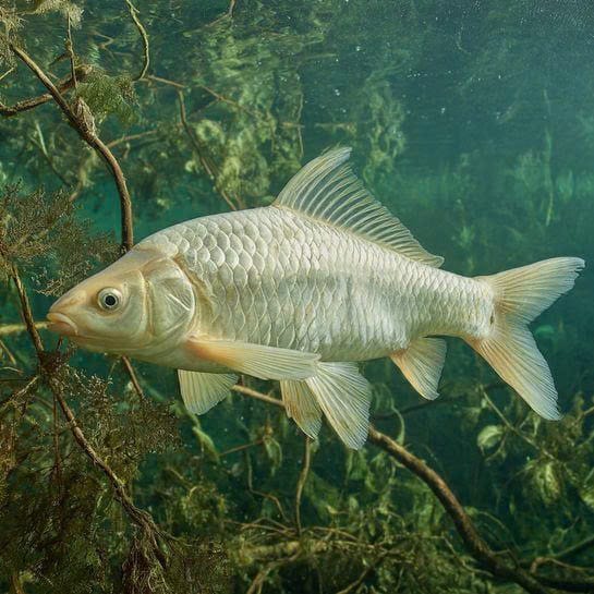 Crucian Carp is a small to medium-sized carp native to Europe and Asia, known for its resilience and ability to survive in low-oxygen or winter conditions.