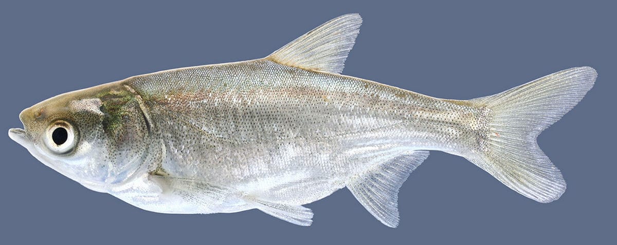 Silver Carp (Hypophthalmichthys molitrix) are closely related to Bighead Carp, native to freshwater systems in China. Known for their silvery sheen and leaping behavior when startled, Silver Carp are popular in aquaculture but can become invasive in non-native habitats.