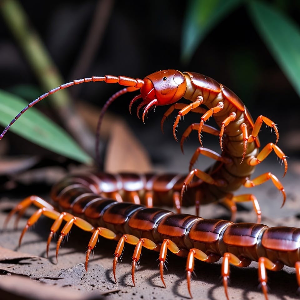 The Amazonian Giant Centipede is one of the largest centipede species in the world, often exceeding 12 inches in length. Native to South America, particularly the Amazon rainforest, this centipede has a striking reddish-brown coloration and a powerful predatory capability. Unlike smaller centipedes, it can prey on small vertebrates, including frogs, lizards, and even bats, showcasing its formidable hunting skills.