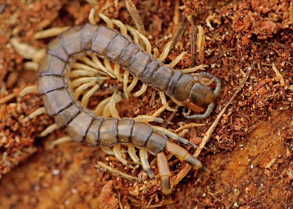 The Hoffman’s Dwarf Centipede (Nannarrup hoffmani) is one of the smallest, measuring less than 10 mm in length.