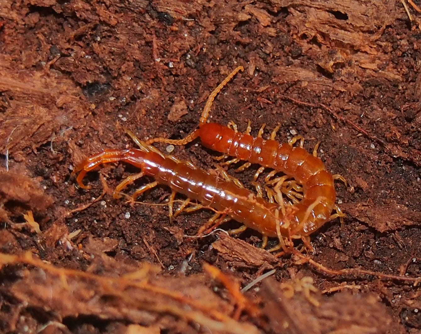 This species relies on its venomous forcipules to immobilize prey quickly. Its elongated legs and flexible body allow it to navigate complex forest litter effortlessly. The Western Fire Centipede is relatively tolerant of human presence but will retreat when disturbed. By preying on potential pest species, it indirectly benefits gardeners and ecosystems. Its lifecycle includes egg-laying in damp substrates, with juveniles gradually developing full size through multiple molts. Studying this species highlights the diverse adaptations centipedes employ for survival, from venom potency to stealthy nocturnal activity.