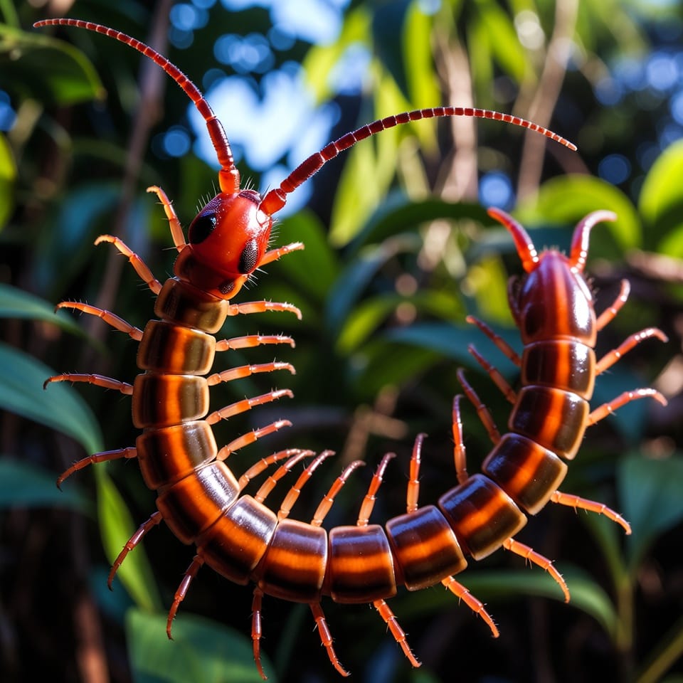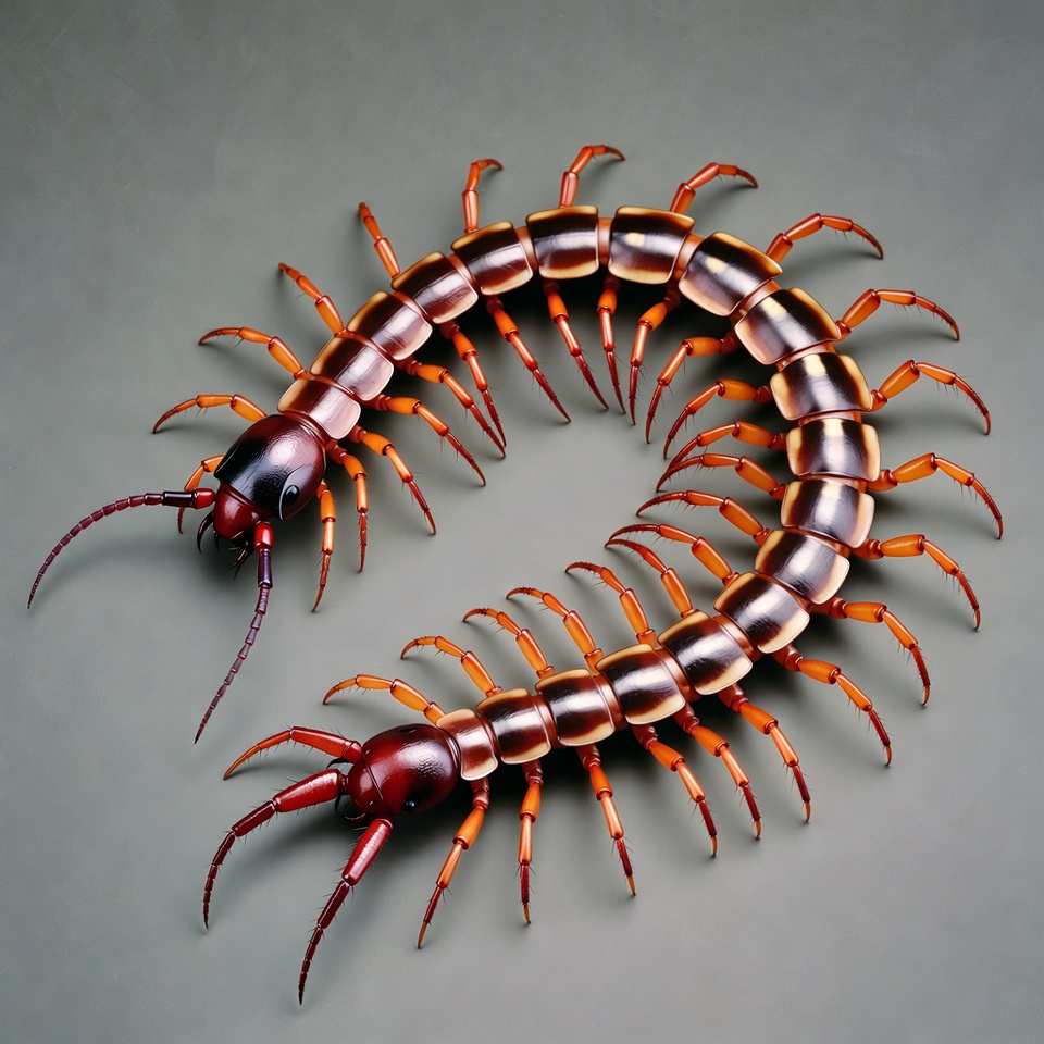 The Red‑headed Centipede, Scolopendra morsitans, is a widely distributed species across Africa, Asia, and parts of the Americas. Its distinctive reddish head contrasts with a darker body, providing a unique visual identifier. This large centipede is a skilled nocturnal predator, feeding on insects, small mammals, amphibians, and other invertebrates. Its hunting strategy combines speed, agility, and venom potency, making it a formidable predator in its ecosystem.