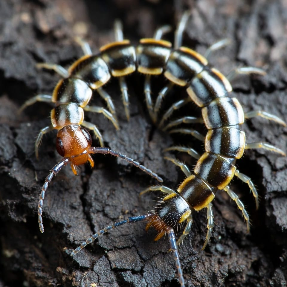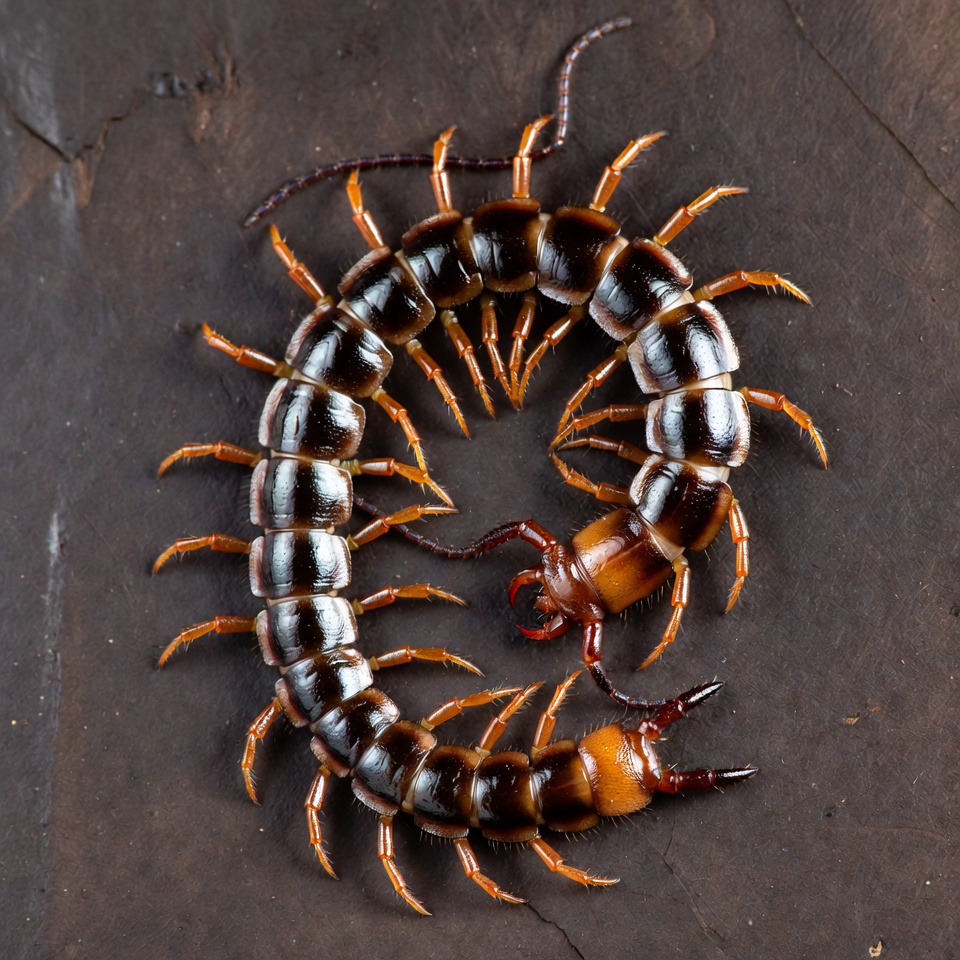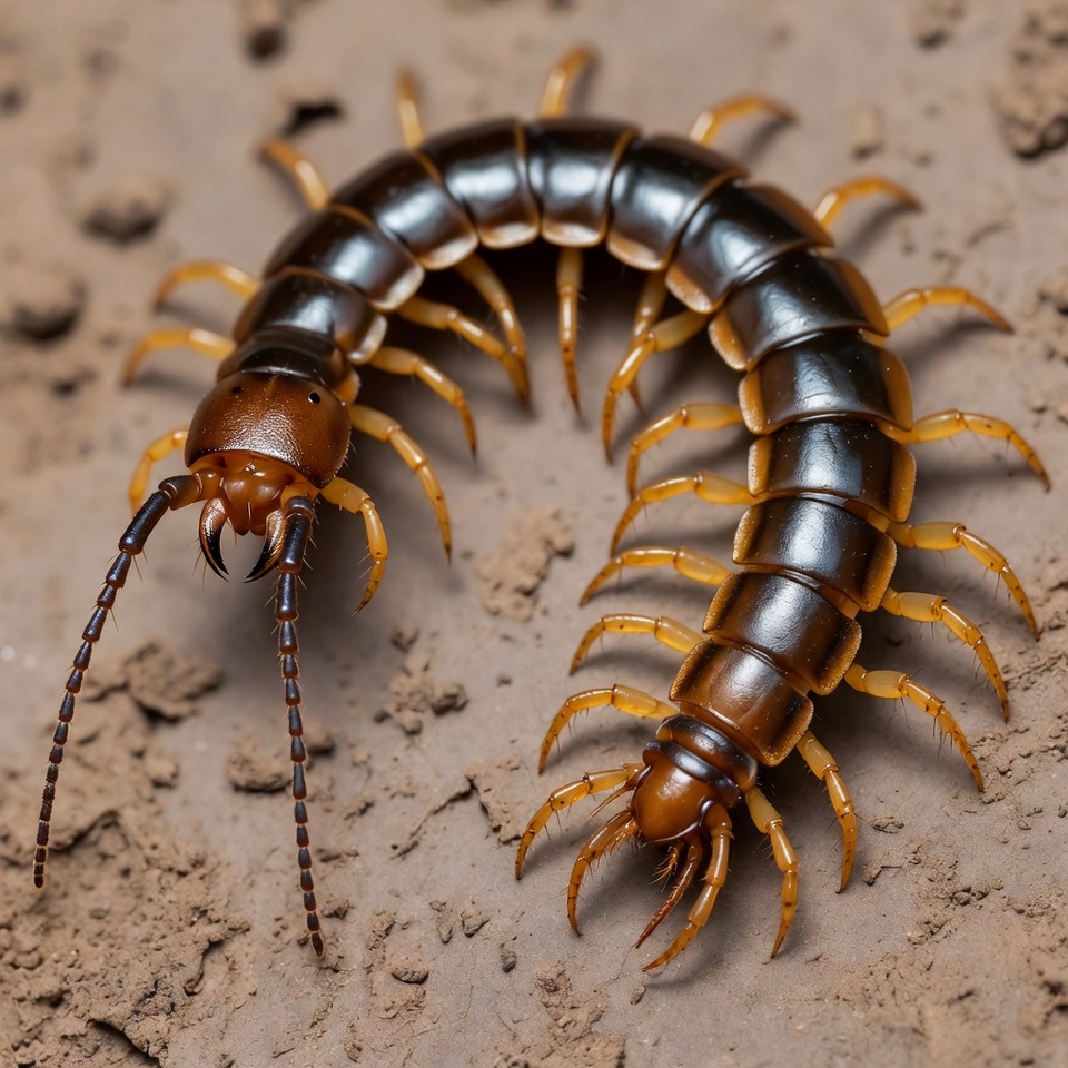 Centipedes coordinate their many legs in waves of motion, allowing rapid and flexible movement across uneven surfaces.