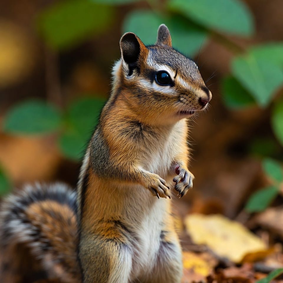 The Least Chipmunk is the smallest North American chipmunk species, measuring only 7–9 inches long. It has a distinct pattern of stripes on a tawny brown back and a pale underbelly. Its small size, rapid movements, and high-pitched calls make it a charming subject for wildlife enthusiasts. Compared to larger chipmunks, it appears more delicate but is highly energetic.