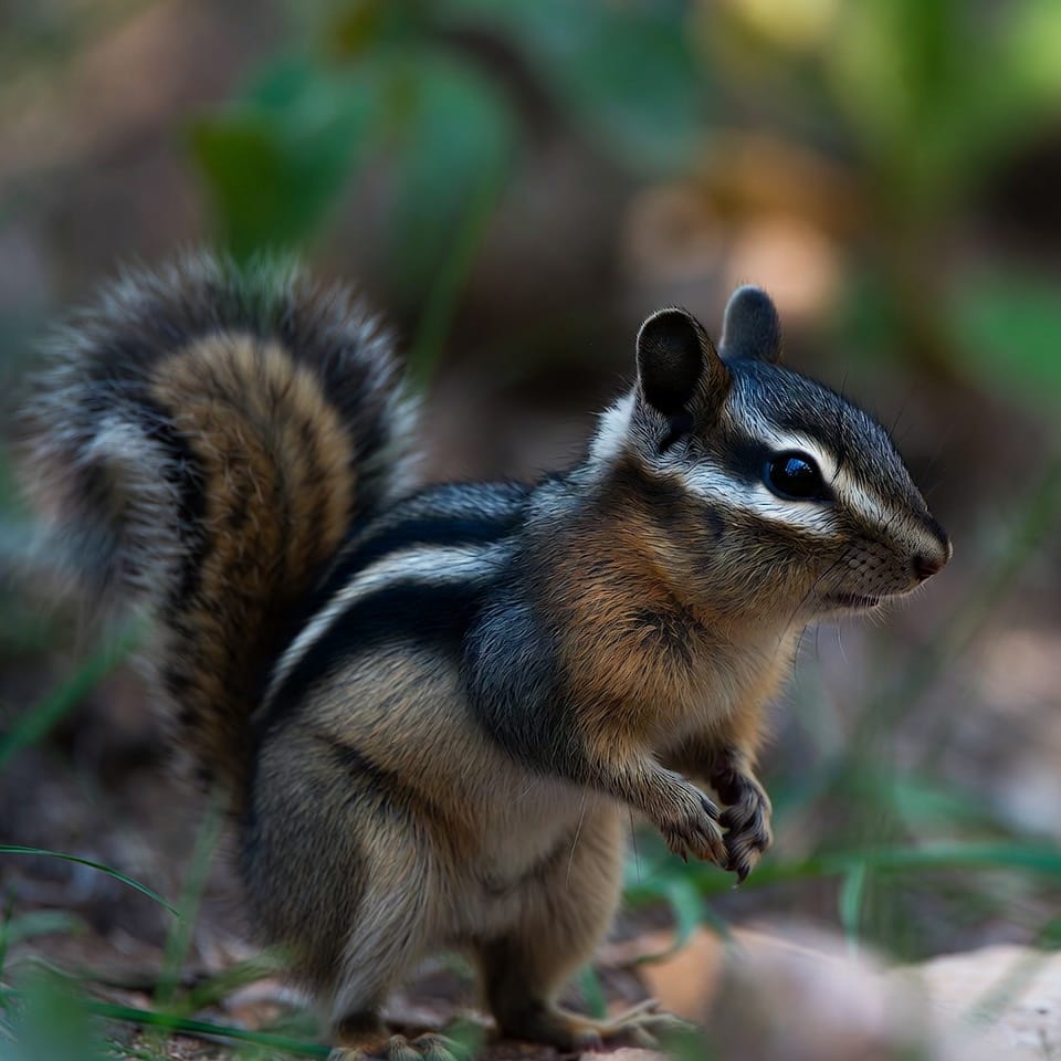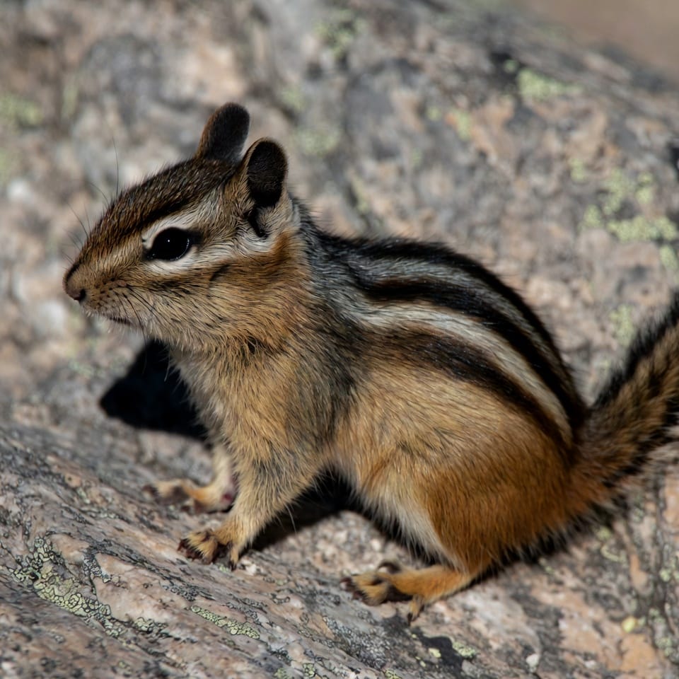 These chipmunks are solitary and maintain well-defined territories. They communicate through chirps, tail flicks, and scent markings. Agile climbers, they use trees, shrubs, and rocks to escape threats. Colorado Chipmunks display curiosity and intelligence when exploring new environments.