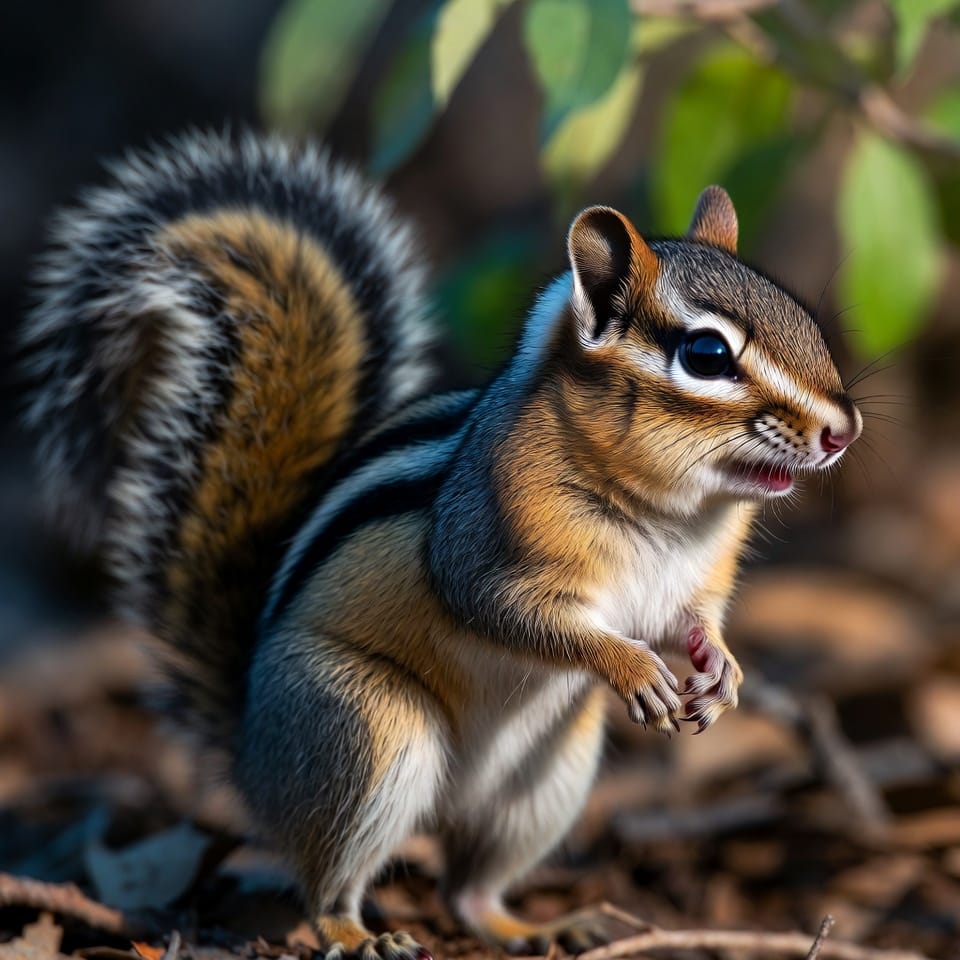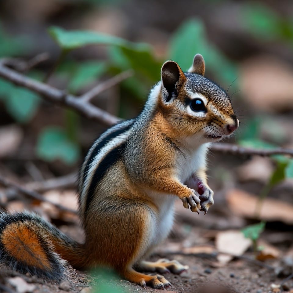 The Eastern Chipmunk is considered stable in population and is not currently threatened. Its adaptability to suburban environments and varied diet contribute to its resilience. Observing them in the wild offers insight into the intricate behavior of small rodents in forest ecosystems.