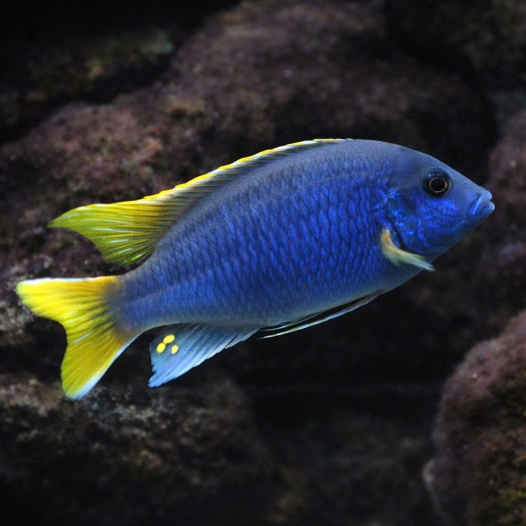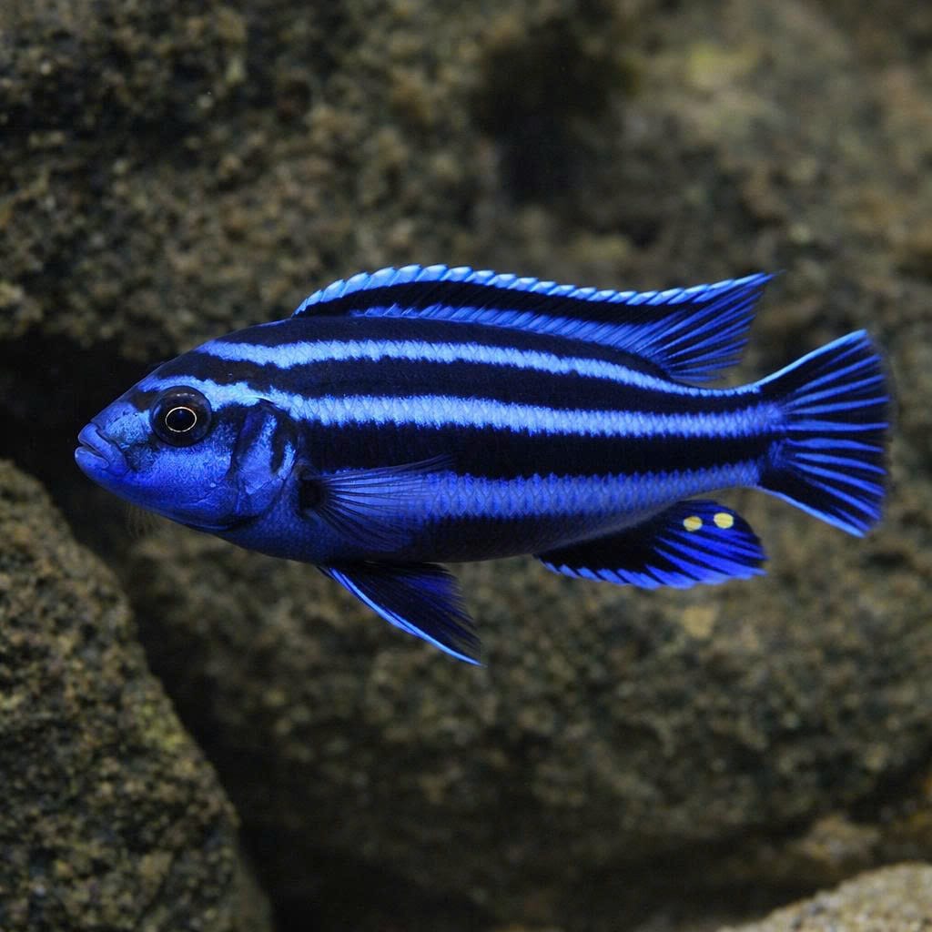 The Electric Blue Johannii is a striking Mbuna cichlid from Lake Malawi, Africa, celebrated for its vibrant electric blue coloration. Males are particularly brilliant, displaying deep blue with dark vertical stripes, while females are usually less colorful but share similar patterns. They grow to about 4–5 inches and are known for their active and territorial behavior, making them a favorite for dedicated Malawi cichlid enthusiasts.
