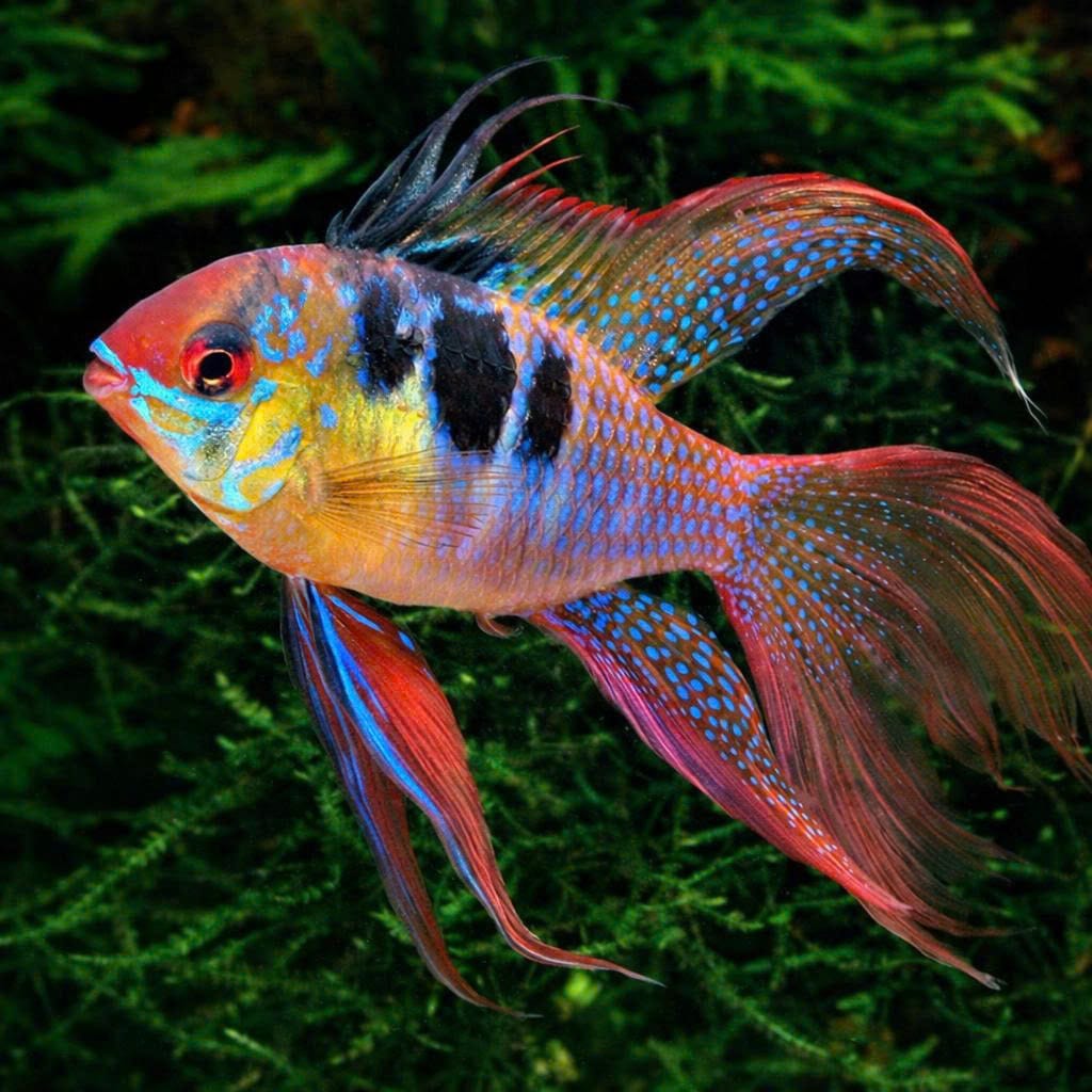 Bolivian Rams are peaceful community fish and omnivorous, feeding on small invertebrates, worms, and plant matter. During breeding, they show parental care by cleaning a flat surface for eggs and fanning them to ensure proper oxygenation. Hardy and less sensitive than German Blue Rams, they are suitable for beginners seeking a beautiful, interactive cichlid. Their elegance, adaptability, and caring behavior make Bolivian Rams a key member of Types of Cichlid Fish.