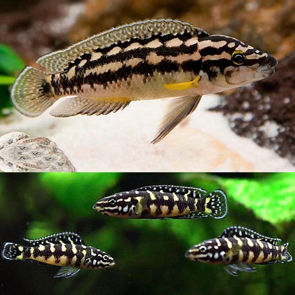 Julidochromis are small Tanganyika cichlids, recognizable by their slender bodies and striped patterns. They are territorial and form monogamous pairs.