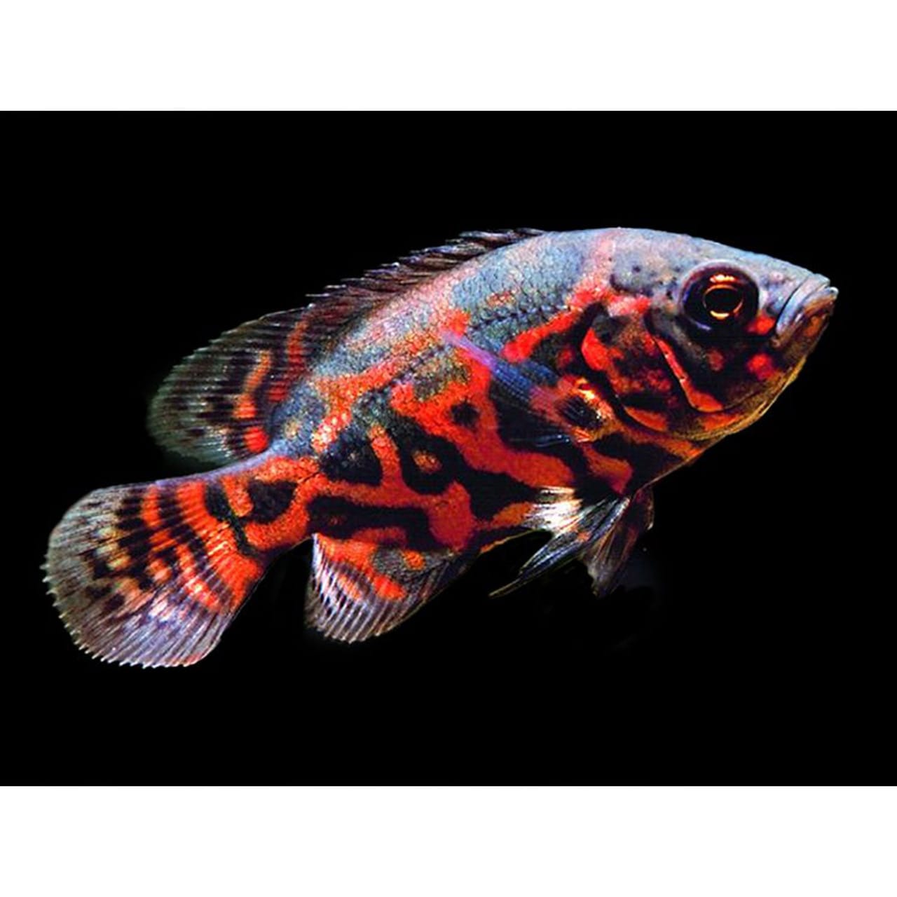 Oscars are one of the most popular cichlid fish in the aquarium hobby due to their intelligence, interactive behavior, and striking appearance. Native to South America, they typically grow to 12–16 inches in captivity and can live over a decade with proper care. Their coloration ranges from dark brown to orange or red patterns on their fins and body, often with eye-like spots near the tail.