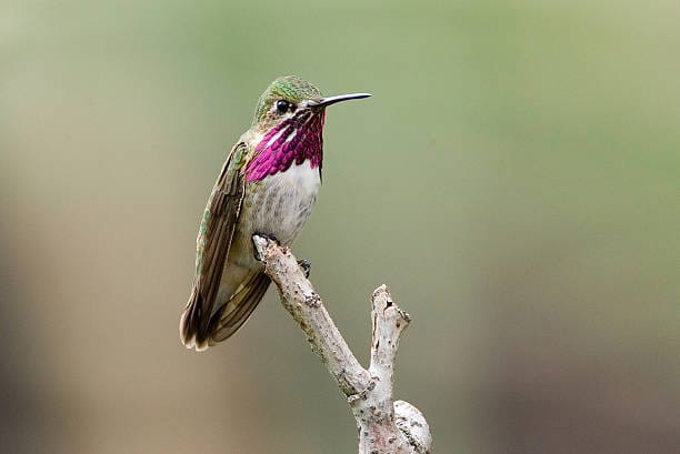 | Calliope Hummingbird | 7–8 | Magenta throat, streaked white underparts | Green back, pale throat | No | Very rare | Nectar & insects |