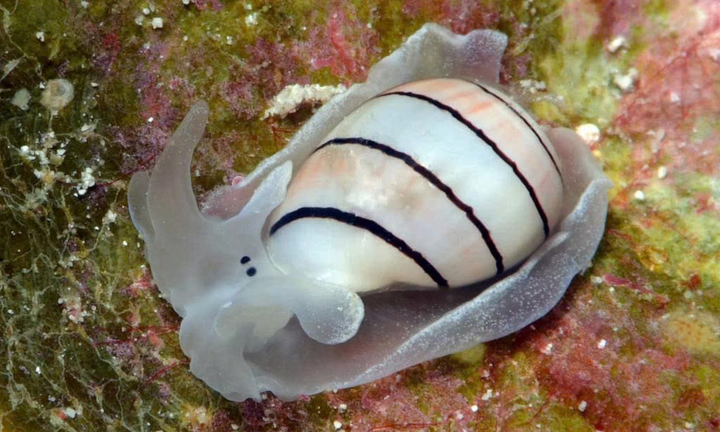 Adults are typically 1–5 cm, with delicate, semi-transparent shells that offer minimal protection but allow flexibility and camouflage. Bubble shells move slowly using a muscular foot and secrete mucus to aid movement and feeding. Reproduction involves external fertilization or egg-laying in gelatinous masses attached to surfaces. Larvae drift in plankton before settling.