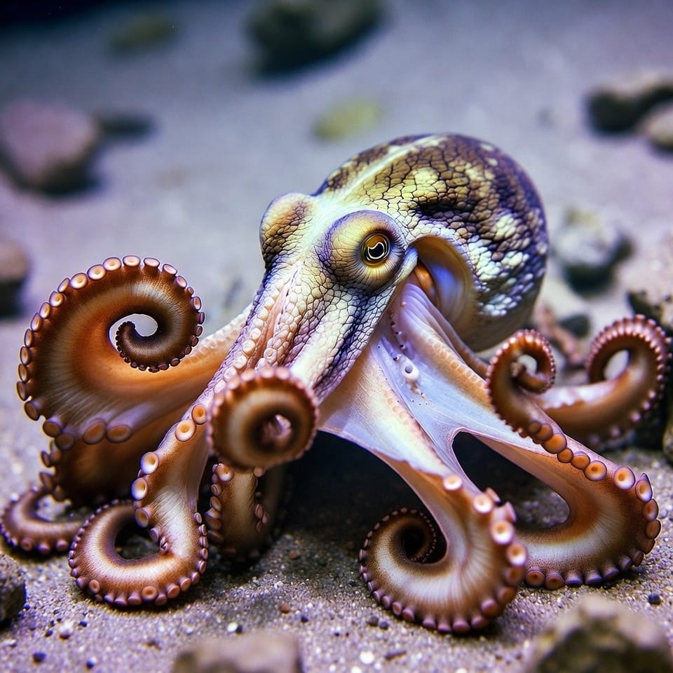 Octopuses lay eggs that the female guards until hatching, after which she usually dies; they show complex mating behaviors.