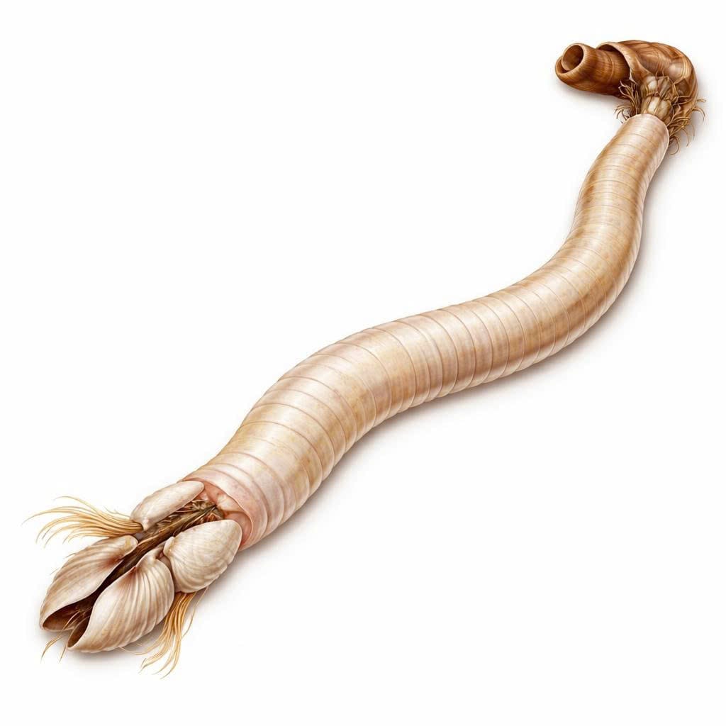 Shipworms are a unique group of bivalve mollusks that bore into submerged wood, including driftwood, piers, and old ships. Often called “teredo worms,” shipworms are important for recycling wood in marine ecosystems. Despite their worm-like appearance, they are true bivalves, with tiny shells at the front used for boring.