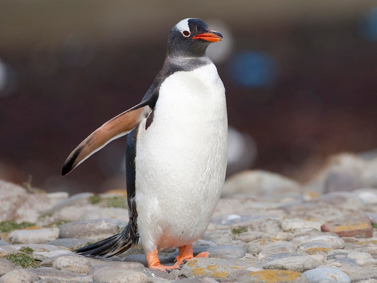 The Gentoo Penguin is notable for its bright orange bill, white eye patches, and robust, waddling gait. Standing about 75–90 centimeters (2.5–3 feet) tall and weighing 5–8.5 kilograms (11–18 pounds), Gentoos are medium-sized penguins, favoring rocky shorelines and sub-Antarctic islands for breeding. They are among the fastest underwater swimmers of all penguins, reaching speeds of up to 36 km/h (22 mph).