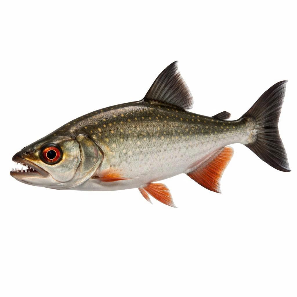 Redeye Piranhas are medium to large species with distinctive red eyes and silvery to grayish bodies. Found widely in South American rivers, they are territorial and aggressive predators.