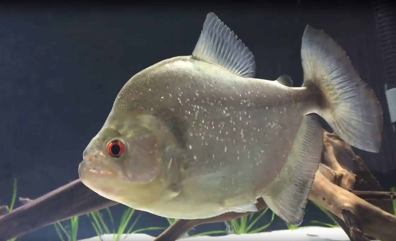 Wimple Piranhas are fascinating due to their specialized feeding strategy: they primarily prey on the scales of other fish, a behavior known as lepidophagy. Their body is silver-gray with red-tinted fins, and they are smaller than many other piranha species.