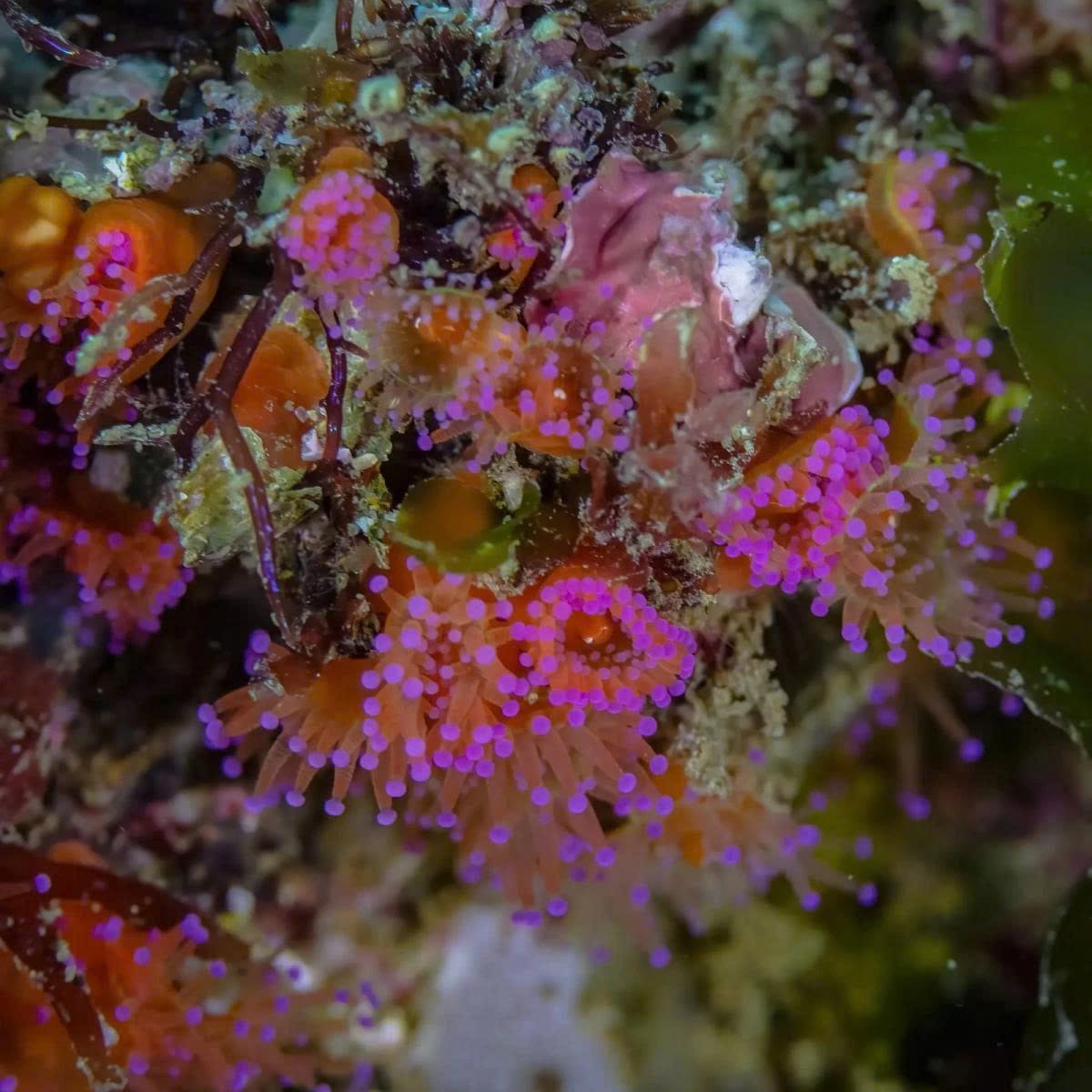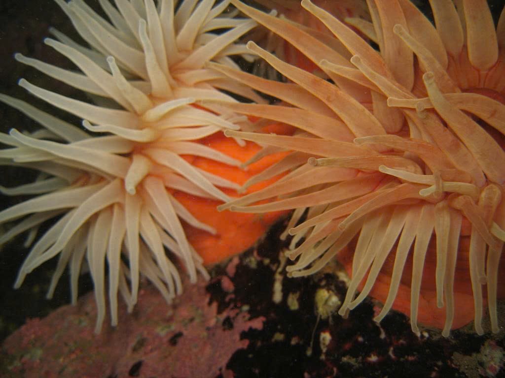 Rose Anemones are noted for their delicate pink or reddish tentacles, often forming clusters on rocky shores and shallow subtidal zones. Typically smaller than the Giant Green Anemone, Rose Anemones grow up to 10 cm in diameter and feed on small invertebrates and plankton.