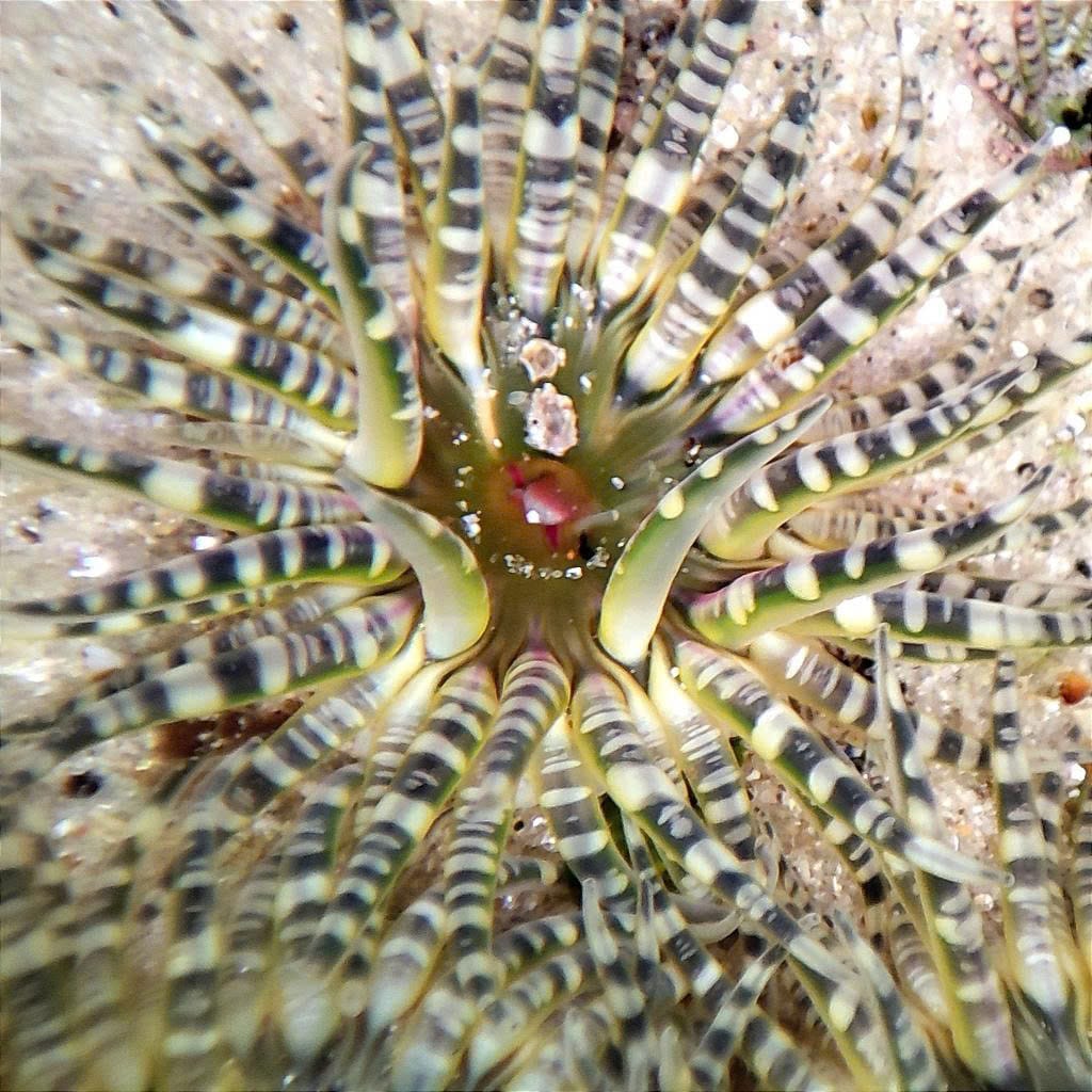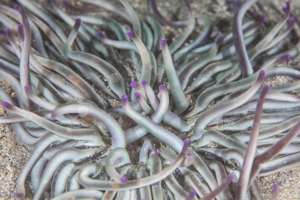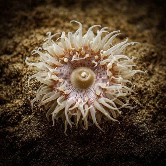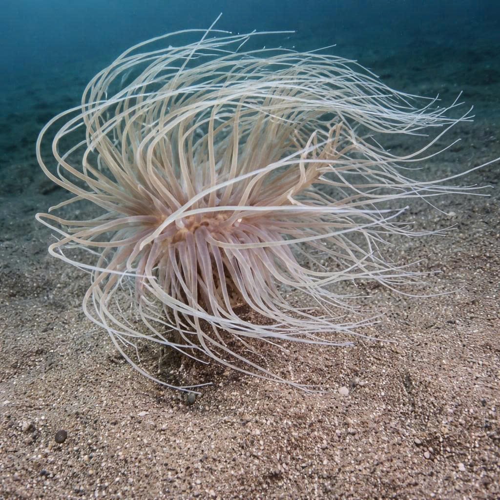 Tube Anemones live buried in sand or mud and extend tentacles into the water to capture plankton. They are sedentary but highly effective predators.