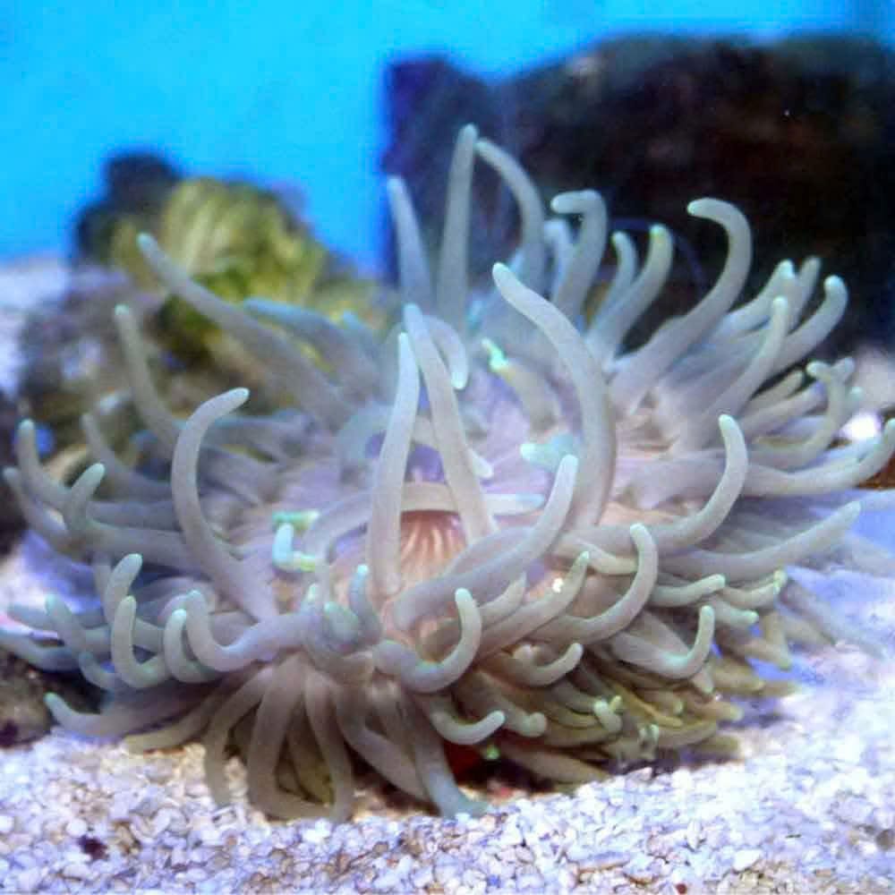 Long Tentacle Anemones are easily recognized by their extended, flowing tentacles, which can reach up to 1 meter in length. Native to Southeast Asia, they inhabit sandy or rubble areas near coral reefs. These anemones host symbiotic clownfish, which find refuge among the tentacles.