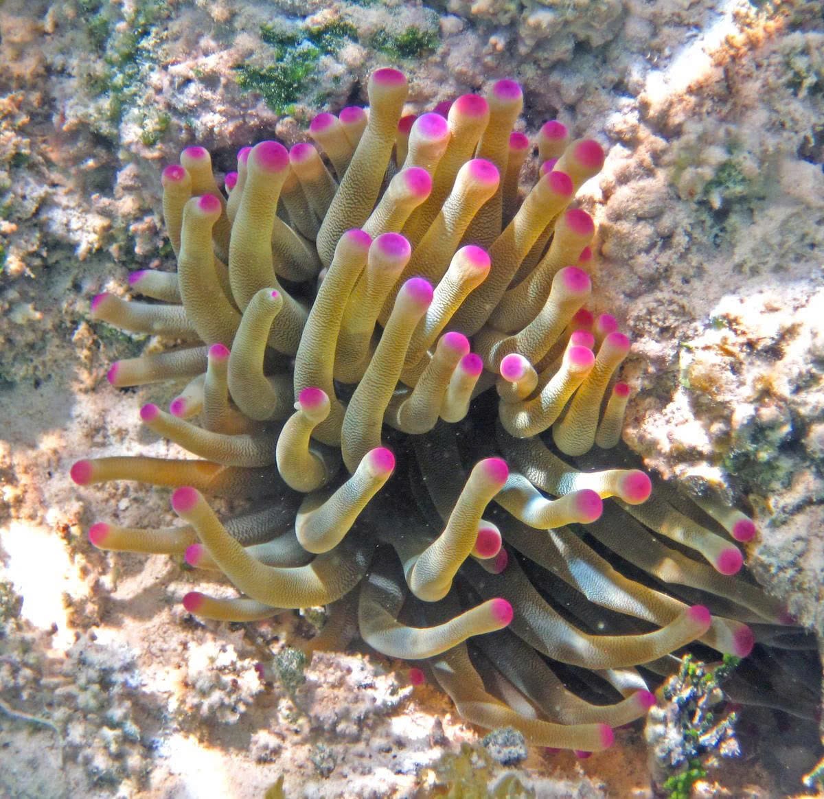 Reproduction occurs both sexually, via larval dispersal, and asexually through budding. Pink Tip Anemones are indicators of environmental health, and their vibrant appearance makes them a favorite among divers and marine enthusiasts.