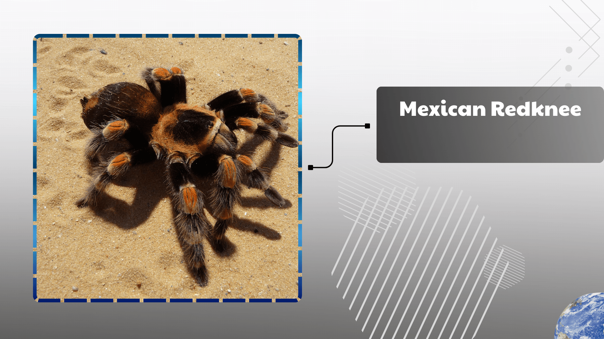 The Mexican Redknee Tarantula is one of the most iconic and recognizable tarantula species, celebrated for its vibrant black body and bright red-orange leg joints. Endemic to the Pacific coastal regions of Mexico, this species is slow-moving, docile, and frequently recommended for beginner tarantula enthusiasts. Adult females can live up to 25 years in captivity, while males have shorter lifespans. This long-lived nature contributes to their popularity in the exotic pet trade. In the wild, they inhabit scrublands, deserts, and semi-arid areas, often creating burrows beneath rocks or tree roots to avoid extreme temperatures.