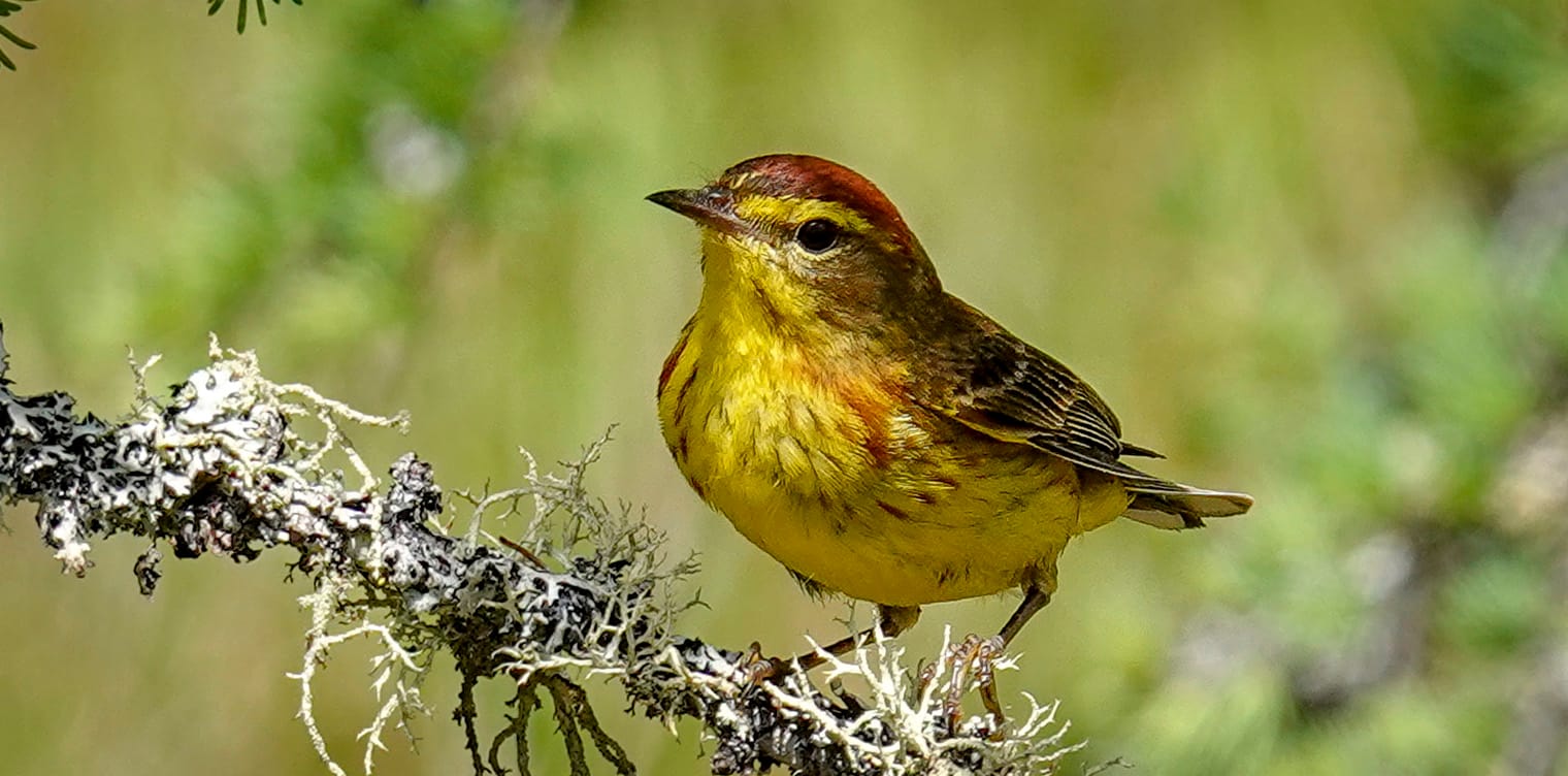 Palm Warblers are small migratory warblers distinguished by their olive-brown upperparts, yellow underparts, and a unique tail-wagging behavior. They breed in boreal forests of Canada and migrate to the southern United States, Central America, and the Caribbean. Palm Warblers are highly active foragers, often flicking their tails while probing for insects and small invertebrates on the ground or in low shrubs.